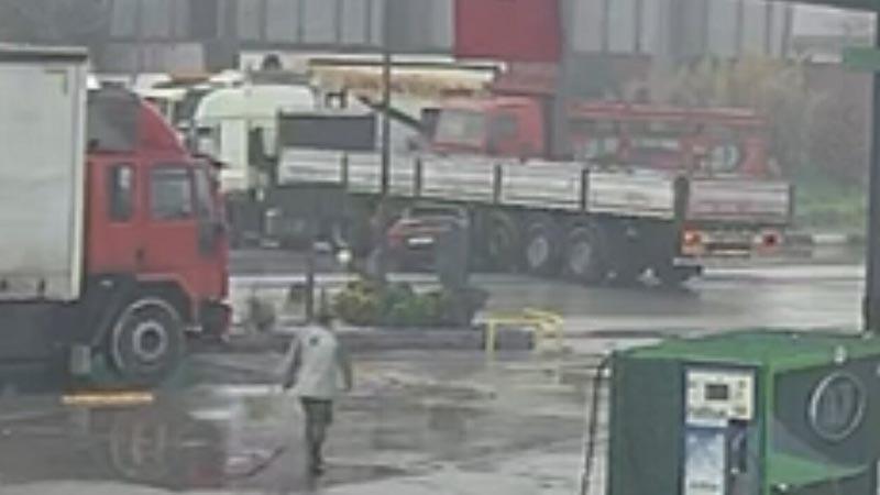Otomobil, akaryakıt istasyonundan dönüş yapan TIR'a çarptı; kaza kamerada