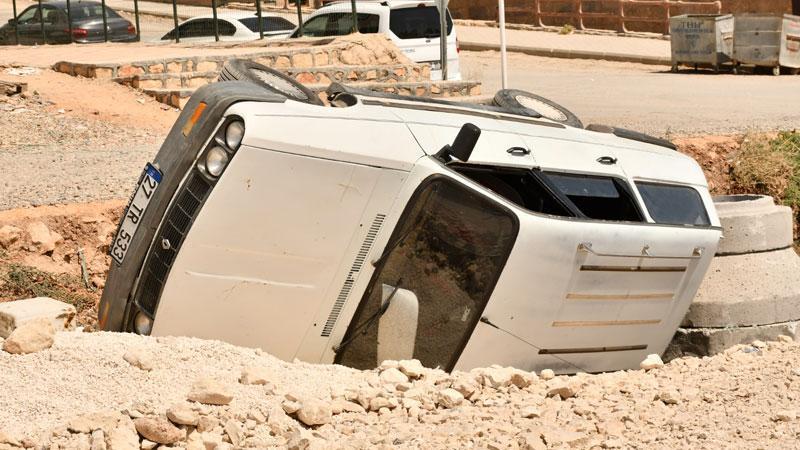 Kaza, Erdemoğlu Mahallesi Çevre Yolu'nda meydana geldi. Ahmet Aslan'ın geri manevra yaptığı 27 TR 533 plakalı otomobil çukura düştü. Kazada Ahmet Aslan ile otomobildeki 4 kişi yaralandı. Çevredekiler, durumu 112 Acil Çağrı Merkezi’ne bildirdi. İhbarla bölgeye sağlık ekipleri sevk edildi. Yaralılar, sağlıkçıların ilk müdahalesinin ardından Besni Devlet Hastanesi'ne kaldırılıp acil serviste tedaviye alındı.