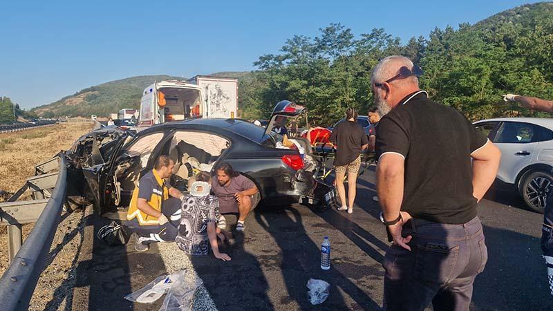 Kaza, sabah saatlerinde Anadolu Otoyolu’nun Gümüşova ilçesi geçişinde meydana geldi. Ankara’dan İstanbul yönünde ilerleyen CT 53 MNT Romanya plakalı otomobil, aynı yönde giden sürücüsünün ismi ve plakası öğrenilemeyen patates yüklü kamyona, ardından da bariyerlere çarptı. Kazada, otomobildeki Romanya uyruklu Ecaterina C., Tulian C., David Gabriel C., Teodora C. ve Renas I. yaralandı. Çevredekilerin ihbarı üzerine kaza yerine sağlık ve jandarma ekipleri sevk edildi. Yaralılar, çevredeki hastanelere kaldırıldı. Kazanın ardından 3 şeritli yolda 2 şeritten sağlanan ulaşım, araçların yoldan kaldırılması sonrası yeniden normale döndü.