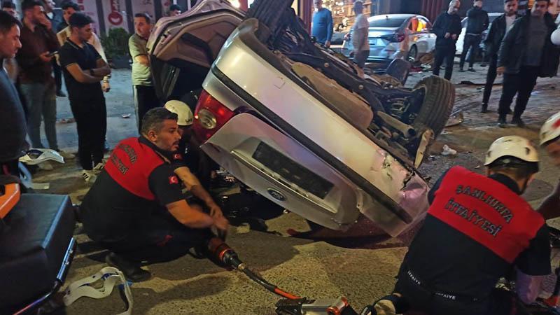 Şanlıurfa'da, park halindeki 3 araca çarpıp devrilen otomobilin sürücüsü Abdulsamet Şeyhanlıoğlu (35) ve akrabası Mehmet Şeyhanlıoğlu (36) hayatını kaybetti, Mehmet Zafer Bağdat (36) da yaralandı.