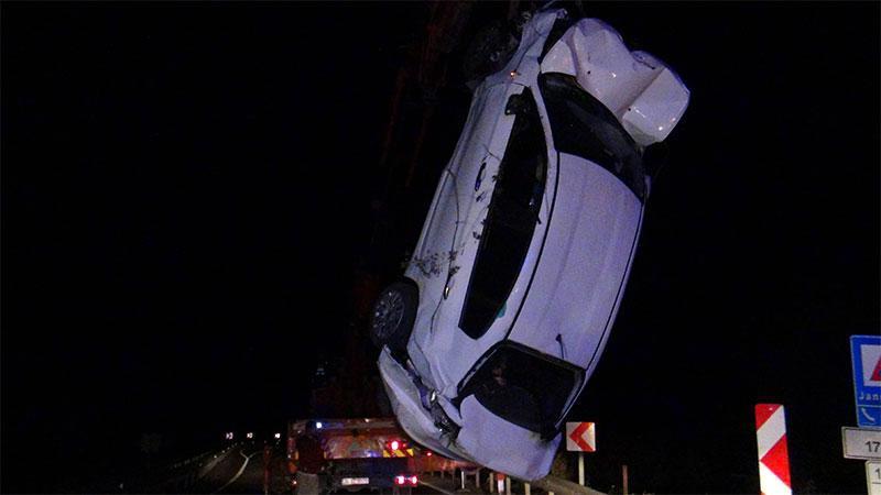 Bursa'da bariyerleri aşıp, şarampole uçan otomobildeki 2 kişi hafif yaralandı.