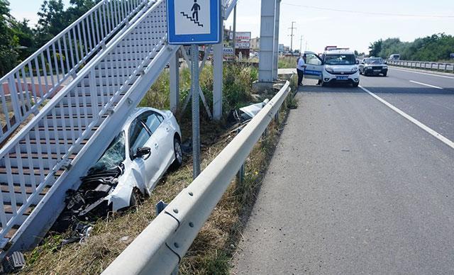 Otomobil, üst geçit merdivenlerine çarptı: 2 yaralı