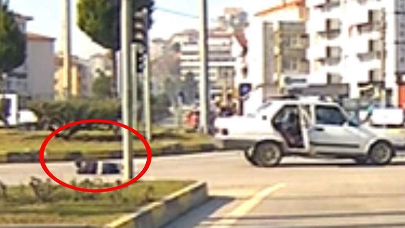 Otomobilin açılan kapısından yola düştü; o anlar kamerada