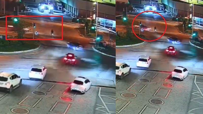 Giresun'da kırmızı ışıkta geçen otomobilin çarptığı motosikletteki Emin B. (23) yaralandı. Kaza güvenlik kamerasına yansıdı.