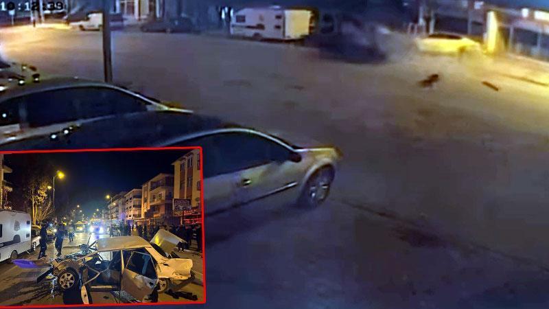 Kaza anı bir iş yerinin güvenlik kamerasına yansıdı. Görüntüde otomobilin park halindeki araçlara çarpıp, savrulduğu anlar yer aldı.