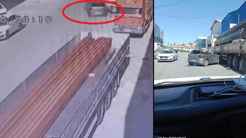 Kaza, saat 09.00 sıralarında Ostim Mahallesi Ferit Alnar Caddesi'nde meydana geldi. Sürücüsünün kontrolünü kaybettiği 34 CCL plakalı otomobil, park halindeki demir boru yüklü TIR'a arkadan çarptı. Otomobil sürücüsü yaralanırken, kaza bir iş yerinin güvenlik kamerasına yansıdı. İhbar üzerine kaza yerine polis ve sağlık ekipleri sevk edildi. İlk müdahalesi kaza yerinde yapılan yaralı, ambulansla hastaneye kaldırıldı.