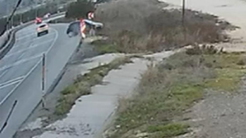 Otomobilin yoldan çıkıp ters döndüğü kaza kamerada; 1 yaralı