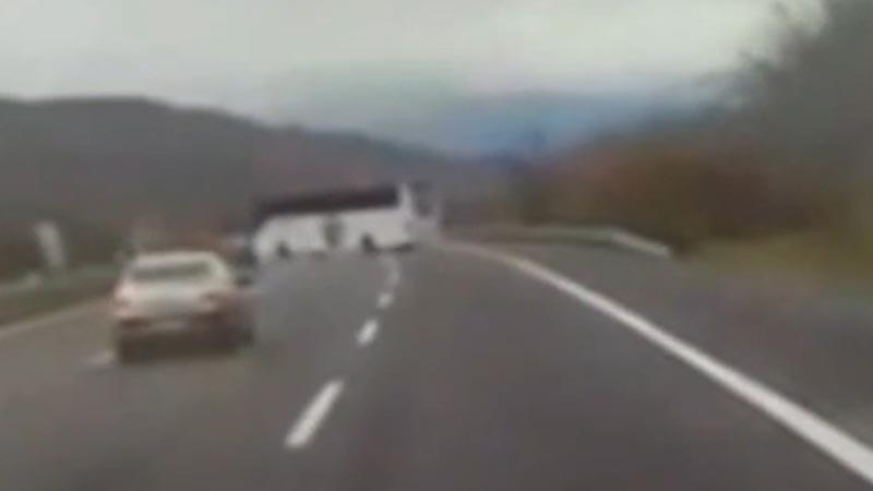 Olay, Anadolu Otoyolu'nun Düzce Gümüşova mevkisinde meydana geldi. Ankara istikametine giden H.Ö. idaresindeki yolcu otobüsü, sağ şeritten bir anda ‘U’ dönüşü yapmak için 3 şeritli yolun en soluna manevra yaptı. Yolcu otobüsünün şoförü, yalnızca Karayolları, itfaiye, ambulans, jandarma ve polis araçlarının kullanmasının serbest, diğer araçlara ise yasak olan acil dönüş alanına geçmek isteyince tehlike yarattı. Bu sırada arkadan gelen otomobilin sürücüsü, otobüse çarpmaktan son anda kurtuldu. O anlar, seyir halindeki aracın kamerasına yansıdı.