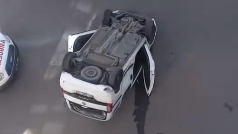 Hafif ticari araç, takla atıp ters döndü. Kazada 2 sürücü de yaralandı. İhbarla bölgeye sağlık ve polis ekipleri sevk edildi. Yaralılar ilk müdahalenin ardından hastaneye kaldırılıp tedaviye alındı. Yaralıların sağlık durumunun iyi olduğu öğrenildi.