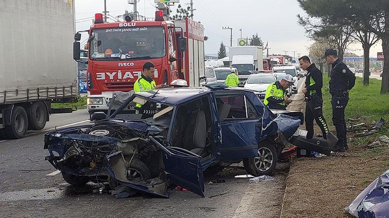 Bolu'da, otomobille çarpıştıktan sonra kontrolden çıkıp ağaca çarparak hurdaya dönen otomobilin sürücüsü Bayram Aslandoğdu (65) kaldırıldığı hastanede hayatını kaybetti, diğer sürücü ise hafif yaralandı.