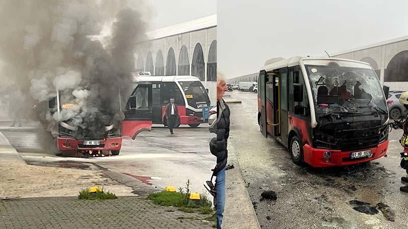 Düzce’de motor kısmından alev alan özel halk otobüsü, yangında kullanılamaz hale geldi.