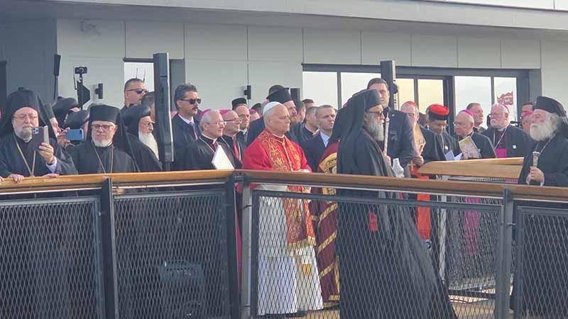 Kendisini karşılayan protokol üyeleri ile birlikte ören yerine giren Papa, beraberindeki kardinalleri, Fener Rum Patriği Bartholomeos ve din adamlarıyla Aziz Neophytos Bazilikası yanında kurulan platforma geçerek burada düzenlenen ekümenik dua törenine katıldı. İki farklı mezhebin temsilcisi din adamları ayinde bir araya gelirken, Katolik olan Papa 14’'ncü Leo ile İstanbul Ortodoks Patrikhanesi Patriği ve İstanbul Başpiskoposu olarak görev yapan Bartholomeos yan yana dua etti.
