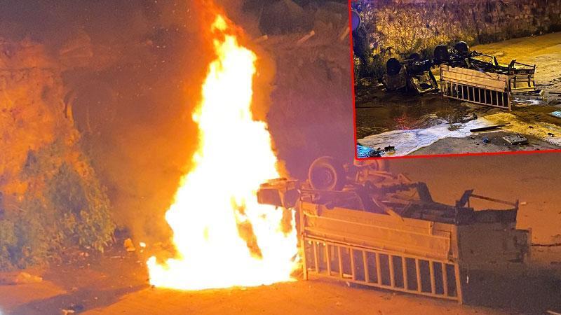 Park halindeyken hareket edip, dereye düşen kamyonet alev aldı