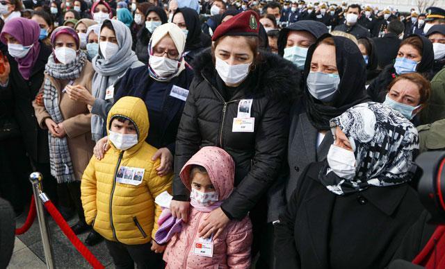 Şehitlerden Burak Coşkun'un eşi Müge Coşkun ile Eruğ Güler'in eşi Gizem Güler, eşlerinin bordo bereleriyle törene katıldı. Çocukları da yanında bulunan Müge Coşkun ile Gizem Güler, tören geçişi sırasında eşlerine son kez el salladı. Şehit Harun Turhan'ın babası Mustafa Turhan da tören geçişi sırasında güçlükle ayakta durdu. "Oğlum hiçbir zaman görevden kaçmadı. Güle güle git oğlum" diyen şehit babasını askerler teskin etti. Törenin ardından şehitler Coşkun ve Güler, Cebeci Askeri Şehitliği, şehit Turhan ise Sincan Cimşit Mezarlığı'nda toprağa verildi.
