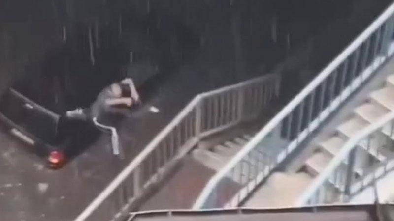 Pendik'te alt geçitte mahsur kaldı; merdiven korkuluklarına atlayarak kurtuldu