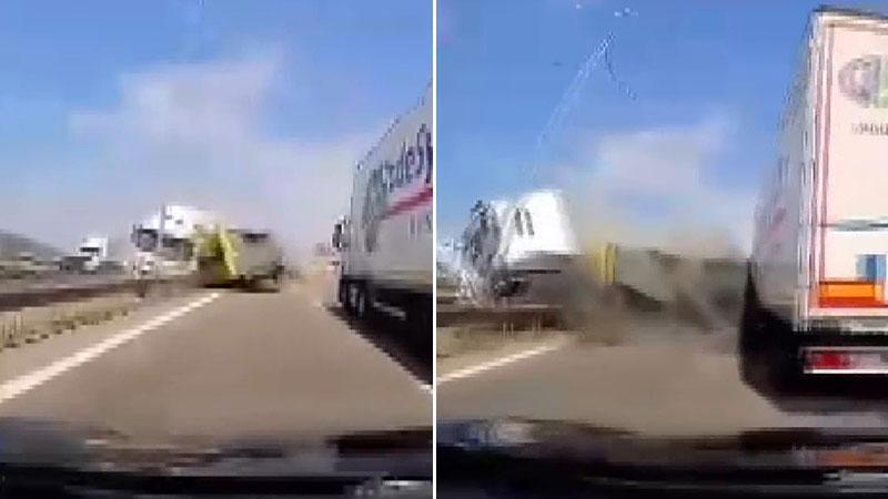 Yaşanan kaza anları ise araç kamerasının görüntülerine yansıdı. Görüntülerde hafriyat kamyonunun bariyerlere çarparak devrilmesi ve diğer araçlara çarpması saniye saniye kayıtlara yansıdı.