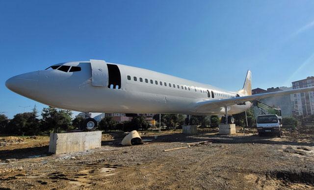 Trabzon Havalimanı'nda 3 yıl önce iniş sırasında kontrolden çıkıp, denize 25 metre kala yamaca saplanan ve hurdaya ayrılan, Boeing 737-800 tipi yolcu uçağının, Yomra ilçesi sahilinde 'pide salonu' olarak dönüştürüleceği alanda, gövde ve kanat montajı tamamlandı. Çevresi havalimanı konseptinde düzenlenecek uçak, gelecek yıl hizmete alınacak.