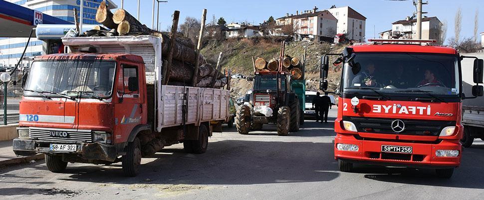 Olay, saat 09.00 sıralarında, Gültepe Mahallesi'nde bulunan Toptancılar Sebze Hali'nin girişinde meydana geldi. Sivas Emniyet Müdürlüğü Trafik Tescil ve Denetleme Şube Müdürlüğü ekipleri, Ramazan B. yönetimindeki 58 AF 322 plakalı kamyonu ve arkasındaki Sefa B.'nin kullandığı 58 EE 855 plakalı tomruk yüklü traktörü durdurdu. Kamyonun muayenesinin geçtiğini ve traktör sürücüsü Sefa B.'nin ehliyetinin olmadığını tespit eden ekipler, baba- oğul hakkında cezai işlem uyguladı. Ceza yazılmasına sinirlenen Ramazan B., kamyonun üzerine çıkarak, araçta bulunan bidondaki yağ ve benzini tomrukların üzerine döküp, yakmak istedi. İhbar üzerine olay yerine gelen itfaiye ekipleri de önlem aldı. Polis ekipleri tarafından etkisiz hale getirilen Ramazan B. ile oğlu Sefa B., ifadeleri alınmak üzere karakola götürüldü.