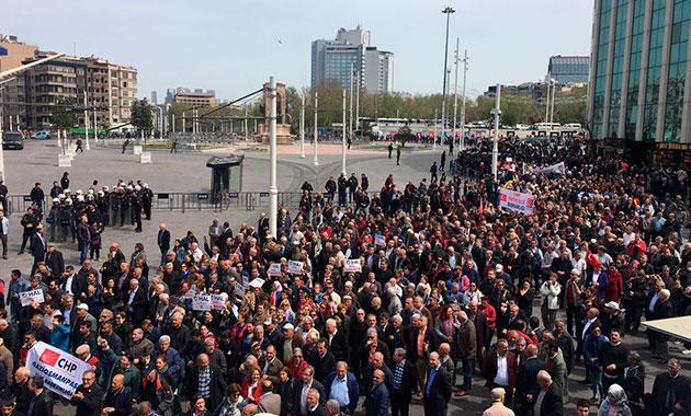 CHP Genel Merkezi tarafından 'OHAL değil demokrasi istiyoruz' sloganıyla bugün Türkiye genelinde 81 ilin meydanlarında eş zamanlı yapılacağı duyurulan eylem için CHP'liler Taksim Meydanı'nda bir araya geldi. Çeşitli sivil toplum örgütleri ile sendikaların da destek verdiği eyleme CHP İstanbul İl Başkanı Canan Kaftancıoğlu'nun yanı sıra CHP Milletvekilleri, ilçe belediye başkanları, il ve ilçe yöneticileri de katıldı. Eylemde, Aykut Erdoğdu, Oğuz Kaan Salıcı, Gürsel Tekin, Mahmut Tanal, Selina Doğan, Onursal Adıgüzel, Gülay Yedekci , DİSK Başkanı Kani Beko hazır bulundu.