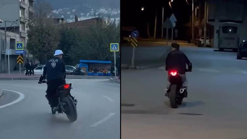 Olay, 30 Mart’ta Osmangazi ilçesi Alemdar Mahallesi'nde meydana geldi. Polis yeleği giyerek plakasız motosikletiyle trafiğe çıkan A.C., drift atıp, tek teker üzerinde ilerledi. Yaptığı tehlikeli hareketleri cep telefonuyla arkadaşına kaydettiren A.C., bu görüntüleri daha sonra sanal medya hesabından paylaştı.