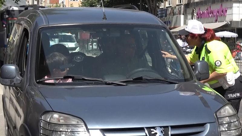 Polisten çocuğa uyarı: Çocuklar ön koltukta oturamaz ceza yazarsak çikolata paran gider