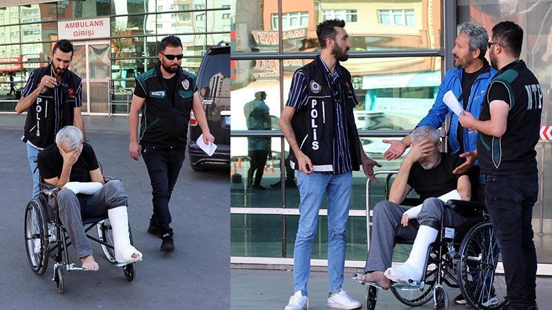Polisten kaçarken ayağını ve kolunu kıran şüpheli, tekerlekli sandelye ile adliyede