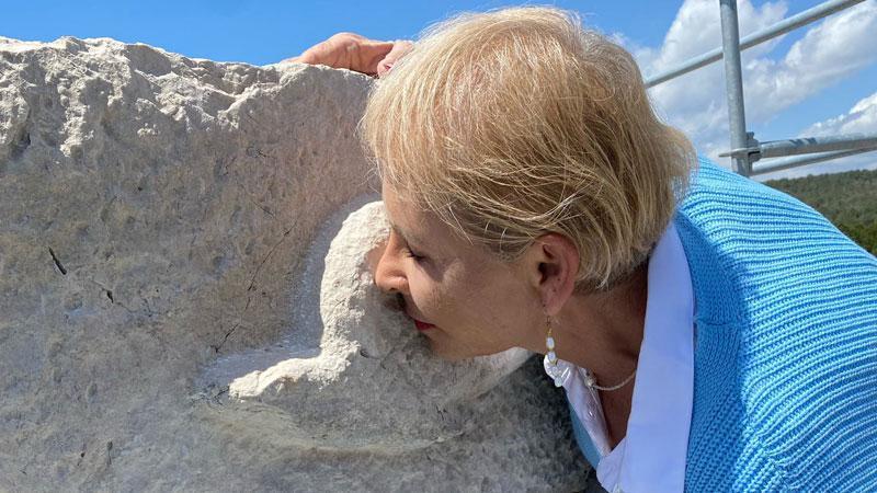 Prof. Dr. Işık'tan Patara Deniz Feneri'ne yerleştirilen yunus kabartmalı taşa öpücüklü veda