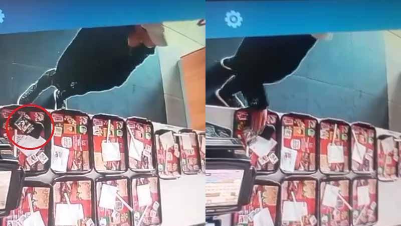 Adana'da kimliği belirsiz kişinin bir restoranda kasadaki yemek tepsisinde bulunan cep telefonunu el çabukluğuyla alıp kaçtığı anlar, güvenlik kamerasına yansıdı.