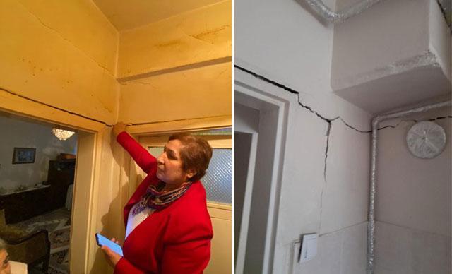 Hasarlı evde oturanlardan Türkan Zencirden ise "30 dairelik binada oturuyorum. Ölüm riski fazla. Çoluk çocuk kendimiz risk altındayız. Gece yatamıyoruz, sabah oturamıyoruz. Gece yattığımızda binadan sesler geliyor. Satsak satamıyoruz, kiraya versek veremiyoruz, gitsek gidemiyoruz. Biz de buranın vatandaşıyız. Hepsinden örnek alındı, hepsi çürük çıktı" dedi.