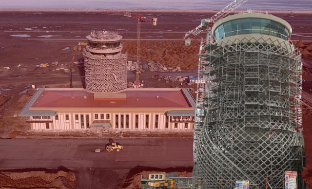 Ulaştırma ve Altyapı Bakanlığı'nca 1000 hektarlık alanda projelendirilen, tamamlandığında Türkiye'nin deniz dolgusuna inşa edilmiş 2'nci havalimanı olacak Rize-Artvin Havalimanı'nın taş- ahşap karışımlı, yöresel mimarili terminal binaları, ilk kez DHA tarafından görüntülendi. 10 katlı bina yüksekliğine eş değer deniz dolgusu biten, üstyapısının da yüzde 80'i tamamlanan projede çay bardağı figürü taşıyan hava kontrol kulesi de ortaya çıktı. Rize Valisi Kemal Çeber, "Giriş takı çay yaprağı, kulesi çay bardağı olan havalimanında Karadeniz mimarisi net bir şekilde görünüyor" dedi.