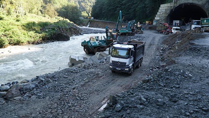 Diğer yandan Ayder Yaylası yolu ulaşıma kapanınca bölgedeki otellerde konaklayan turistler, dönüş yolcuğuna geçemedi. Çökme yaşanan yolda geniş güvenlik önlemleri alınırken, Ayder Yaylası'na ulaşım sağlanan tek yolda, Rize Şehir Hastanesi'nin deniz dolgusunda kullanılan 'C ve antifer' adlı bloklar, kara yolunda dolgu malzemesi görevi görmesi için dereye yerleştiriliyor. Yolun ulaşıma açılması için ekipler, iş makineleriyle yağmura rağmen aralıksız çalışıyor. Ayder Yaylası yolunda çalışmaların sürdürüldüğü güzergah dronla havadan görüntülendi.