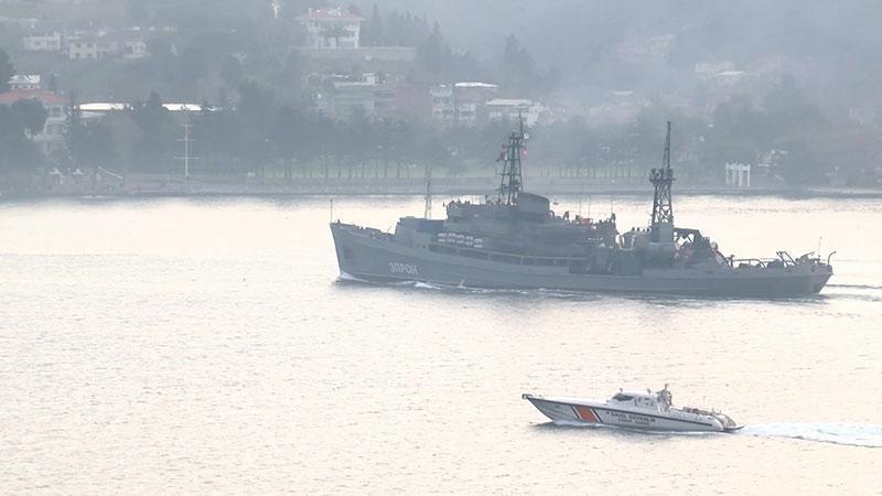 Rus savaş gemisi Epron, İstanbul Boğazı'ndan geçerek Karadeniz’e açıldı. Geminin geçişine sahil güvenlik botları da eşlik etti.