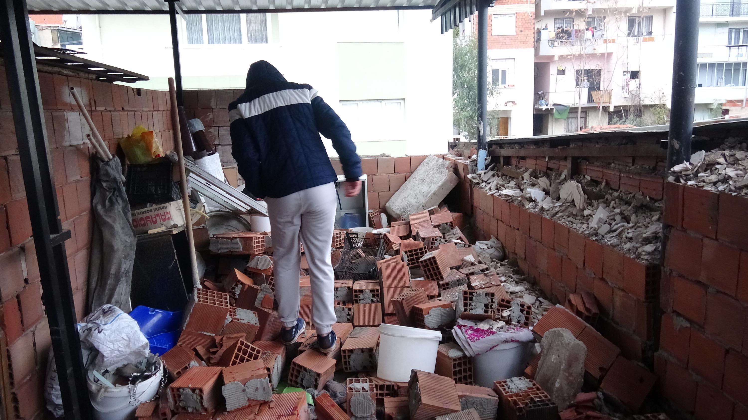 Yukarı çıktığımda duvarların kadınların üzerine çöktüğünü gördüm. İki kişi enkazın altındaydı. Birisini çıkardım diğerine yardım ettim sağ salim çıkmasına. Birisinin yüzünde kan vardı" dedi.