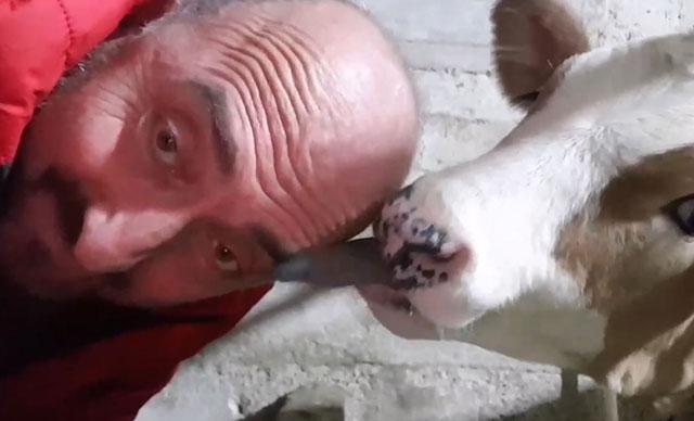 Trabzon'da Ali Suiçmez’in saç ektirenlere tavsiyede bulunup, kendi saçının çıkması için de ahırdaki buzağısına kafasını yalattığı görüntüler sosyal medyada ilgi gördü. Takipçilerin ‘Karadeniz usullü saç çıkartma’ yorumu yaptığı görüntüler tebessüm ettirdi.