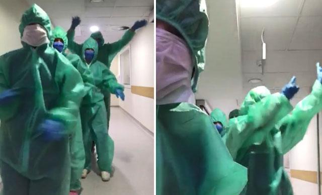 Sağlık çalışanları dans etti, sosyal medyada ilgi odağı oldu