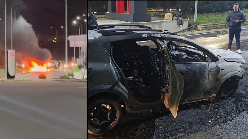 Sürücü, aracı yol üzerindeki dinlenme tesisine çekti. Kısa süre sonra otomobilden alevler yükselmeye başladı. İhbar üzerine olay yerine itfaiye ve polis ekipleri sevk edildi.