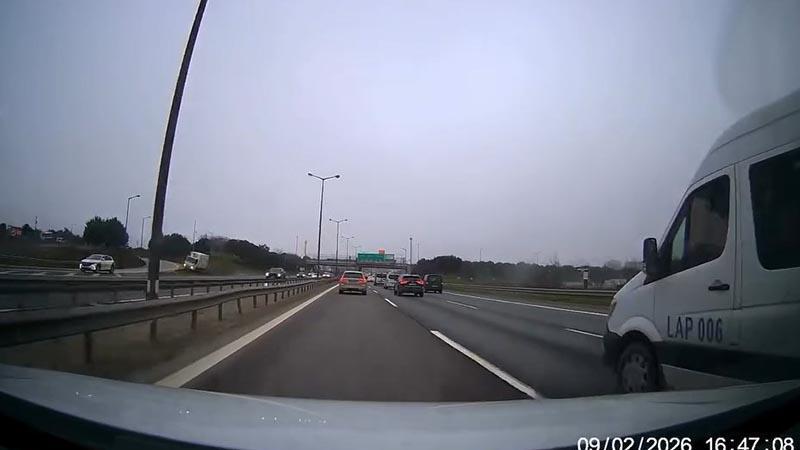 Sancaktepe TEM Otoyolu'nda şoförünün direksiyon hakimiyetini kaybettiği kamyonet, trafik denetimi için bekleyen polis aracına çarptı. Kaza anı başka bir sürücünün araç kamerasıyla görüntülendi.