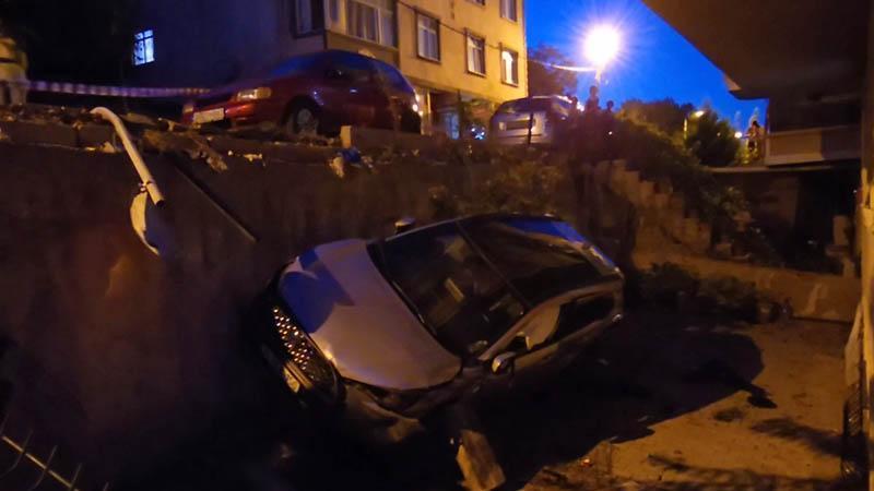 Sancaktepe'de yokuşta kayan cip apartman boşluğuna düştü