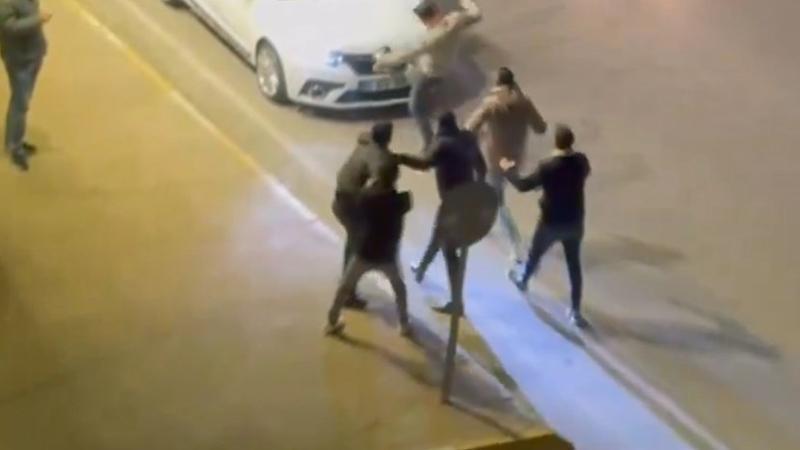 Tartışma kısa sürede tekme- tokat kavgaya dönüştü. Kavga, çevredekiler tarafından cep telefonuyla görüntülendi.