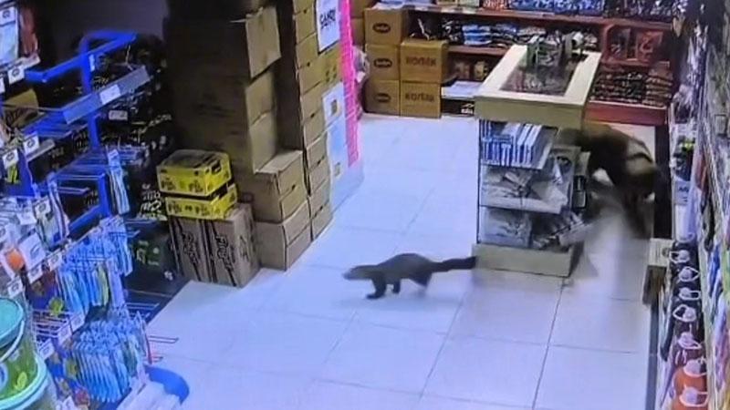 Malatya'nın Yeşilyurt ilçesinde bir markete giren sansar, görüntülendi.