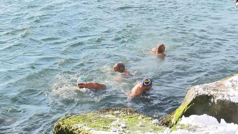 SoÄŸuk havada denizde yüzen Vehbi Kızılgedik, "Biz 12 ay boyunca yaz kış denize giriyoruz. Bugün de çok güzel bir hava var. Kar yaÄŸmasıyla da bir baÅŸka güzel oldu. ArkadaÅŸlarla karın tadını çıkartıyoruz. Üşümüyoruz, kemik iliÄŸi suyumuz var onu içiyoruz çok faydalı" ÅŸeklinde konuÅŸtu. Â