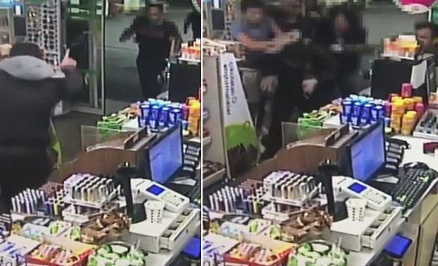 Şüphelilerin bir akaryakıt istasyonu içerisinde ki silahlı kavgaları istasyonun güvenlik kamera görüntülerine yansıdı.