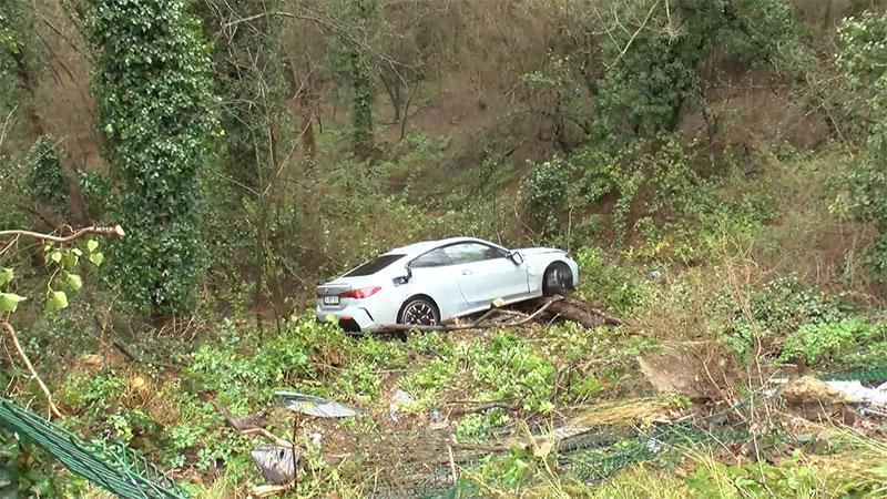 Sarıyer'de otomobil yaklaşık 15 metre derinliğindeki ormanlık alana düştü