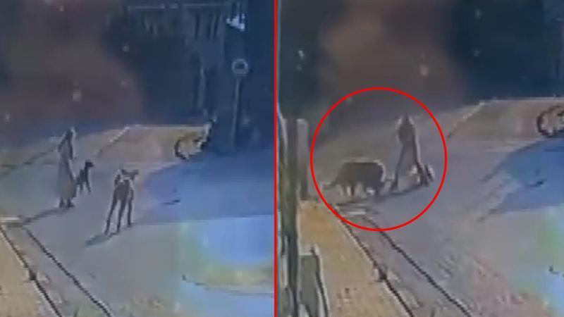 Sarıyer'de sokak köpeklerinin saldırısı kamerada; kadın ve köpeği zor anlar yaşadı