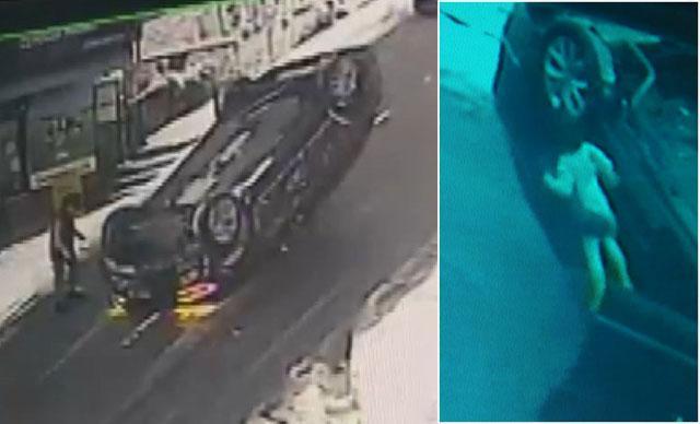 Otomobilin takla atması ise güvenlik kameraları tarafından kaydedildi. Görüntülerde otomobilin kaldırıma çıktığı ve çöp konteynerine çarptığı görülüyor. Takla atan otomobil bir süre ters şekilde sürüklendikten sonra duruyor. Mahalle bakkalı yolu trafiğe kestikten sonra otomobilin kapısını açarak içeridekileri dışarı çıkarıyor. Aile üyeleri çocuklarına sarılarak kazanın şokunu atlatmaya çalışıyor.