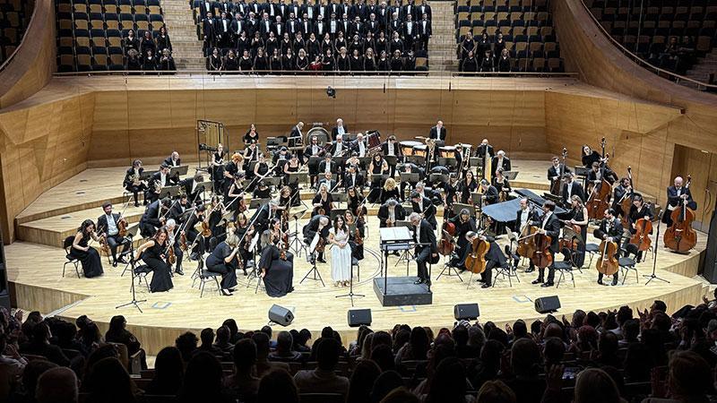 Cumhurbaşkanlığı Senfoni Orkestrası, yaşanan savaşlara ve çocuk ölümlerine ağıt niteliğinde yazılan ve bestelenen ‘Sesler ve Küller’ isimli sahne kantatının dünya prömiyerini gerçekleştirdi.