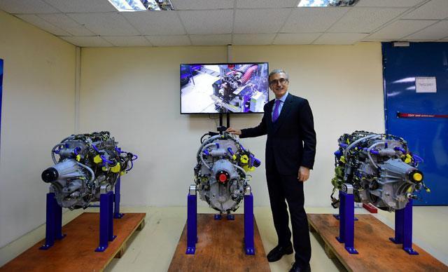Savunma Sanayii Başkanı Prof. Dr. İsmail Demir, daha sonra TUSAŞ’a teslim edilecek seri imalat TEI-PD170 motorlarının önünde hatıra fotoğrafı çektirdi.