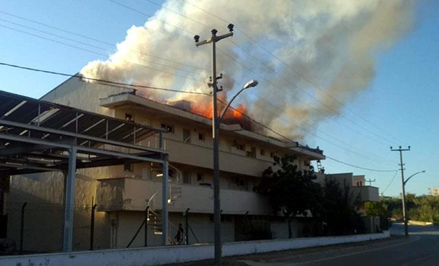 Manavgat’ın Çenger bölgesinde bulunan Sayıştay Başkanlığı Eğitim ve Dinlenme Tesisleri’nin çalışanların kaldığı lojman bölümünde çatıda izolasyon döşemesi yapıldığı saat 16.00 sıralarında bilinmeyen bir nedenle yangın çıktı. İzolasyon malzemelerinin alev almasıyla yangın kısa sürede büyüyerek çatıyı kapladı.