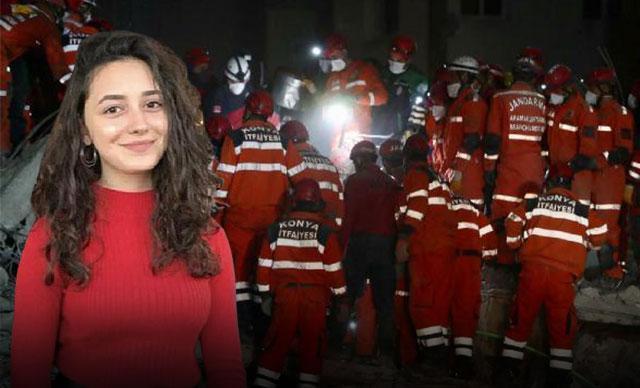 İzmir’de yaşanan deprem faciasında Doğanlar apartmanınında enkazında kalan ve yeri belirlenen İzmir Yüksek Teknoloji Üniversitesi Şehir Bölge Planlama bölümü ikinci sınıf öğrencisi Seda Dinçer’den (20) acı haber geldi. Ekiplerin çalışması sonucu Seda Dinçer'in saat 22.35'te cansız bedeni enkazdan çıkarıldı. Ekipleri, çalışmalarına ara vermeden devam ediyor.