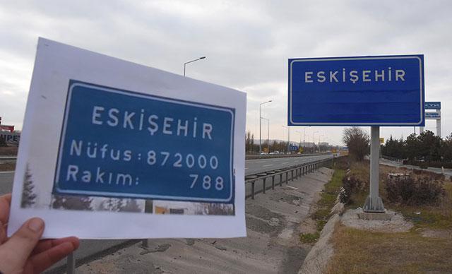 Karayolları Genel Müdürlüğü, her yıl Türkiye İstatistik Kurumu’nun (TÜİK) verileriyle nüfusun değişmesinin ardından 81 il ve 911 ilçenin giriş çıkışlarında bulunan tabelaları yeniden düzenliyor. Değişiklikle birlikte yapılan masrafı ortadan kaldırmak için hazırlanan yeni uygulamada tüm şehir ile ilçe tabelalarından nüfus ve rakım bilgileri kaldırıldı. Tabelaların değiştirildiği kentlerden biri olan Eskişehir’de Ankara, Bursa ve Kütahya güzergahlarında bulunan 3 tabela da yeni düzenlemeye göre hazırlandı. Tabelada daha önce yer alan ‘Nüfusu: 872000 ve Rakım 788’ bilgileri kaldırıldı. Tabelada sadece ‘Eskişehir’ yazısı bırakıldı.